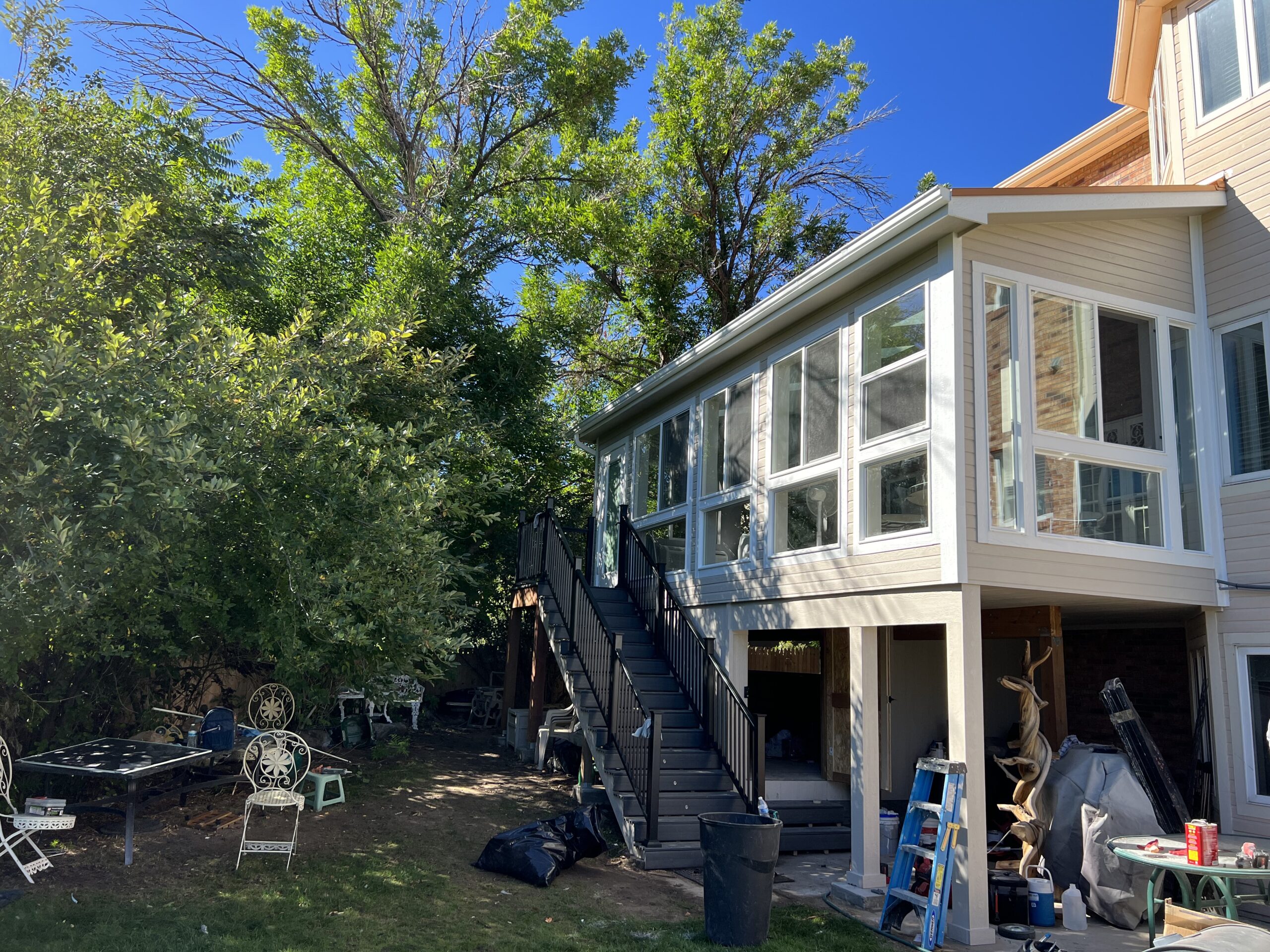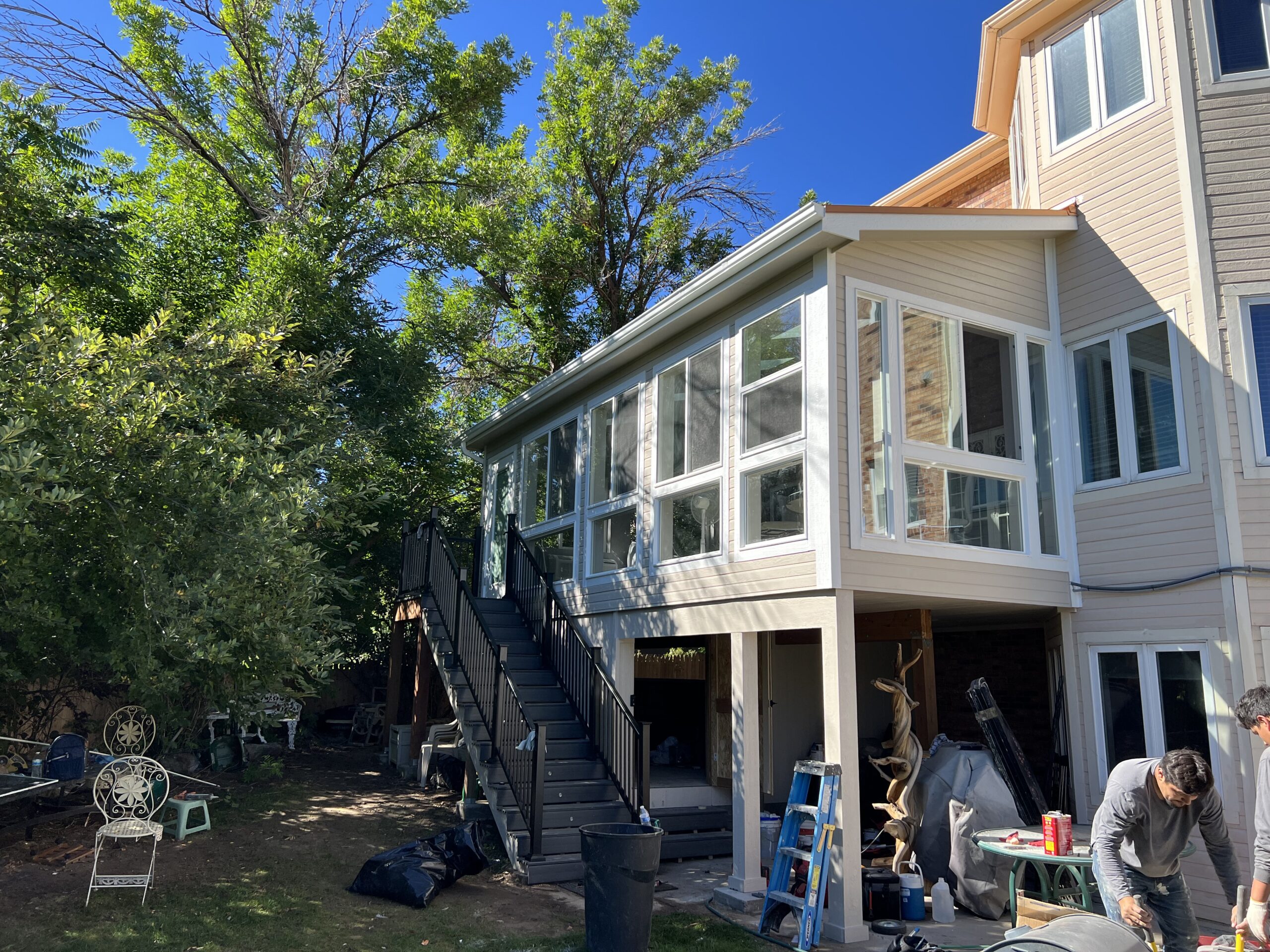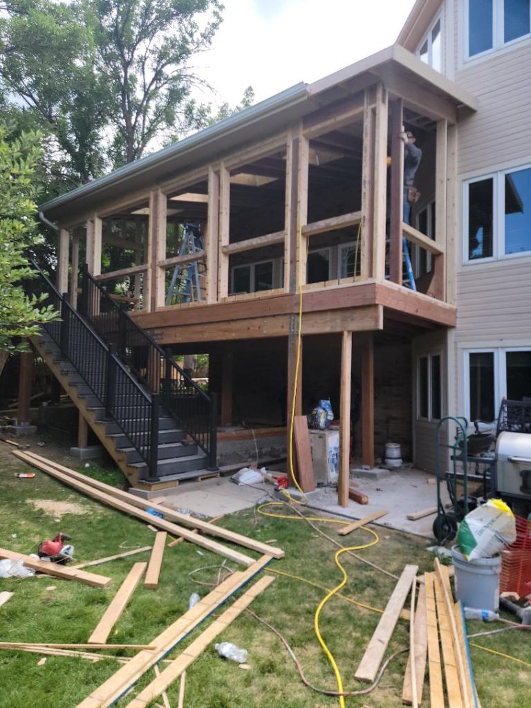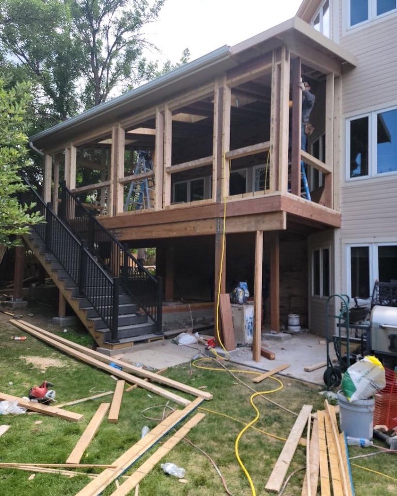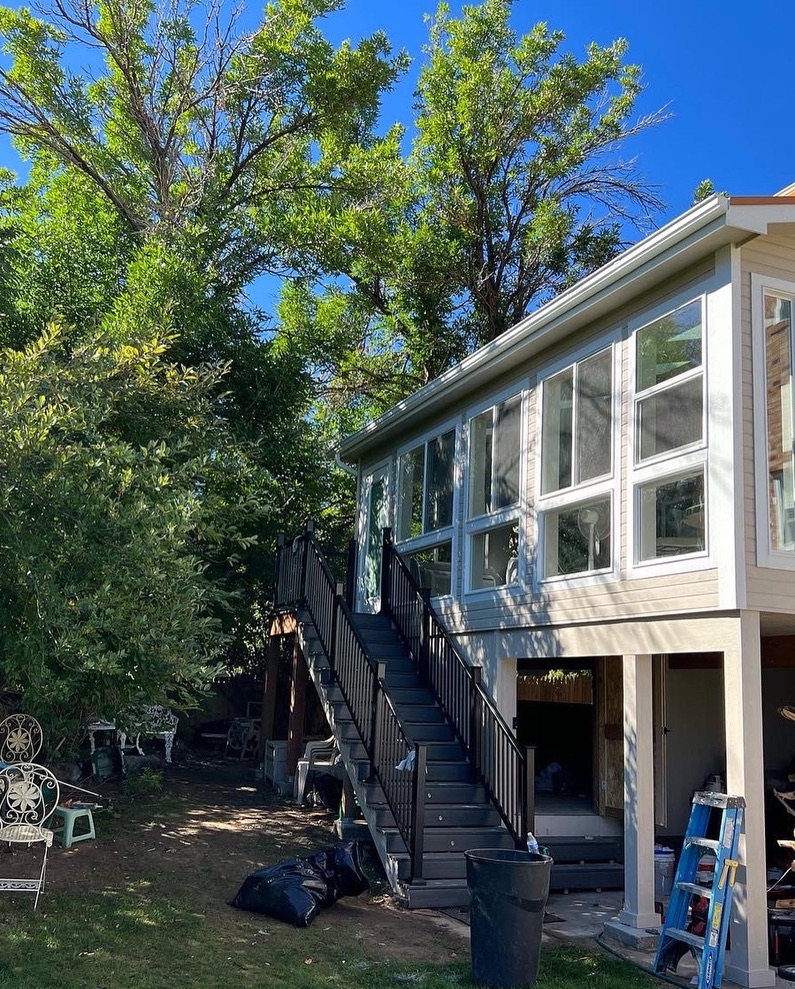 This owner had an old deck that was starting to fall apart; she had kept repainting it every year, but it was never able to stay looking nice. One dream that she had was being able to build a sunroom for her to enjoy views of the outside world throughout the entire year. So what we did was build a sunroom for her. The sunroom was the same size as the existing footprint of her deck. We built a new frame with metal roofing and made the sunroom look like a part of the house by matching things to make it look like the house.