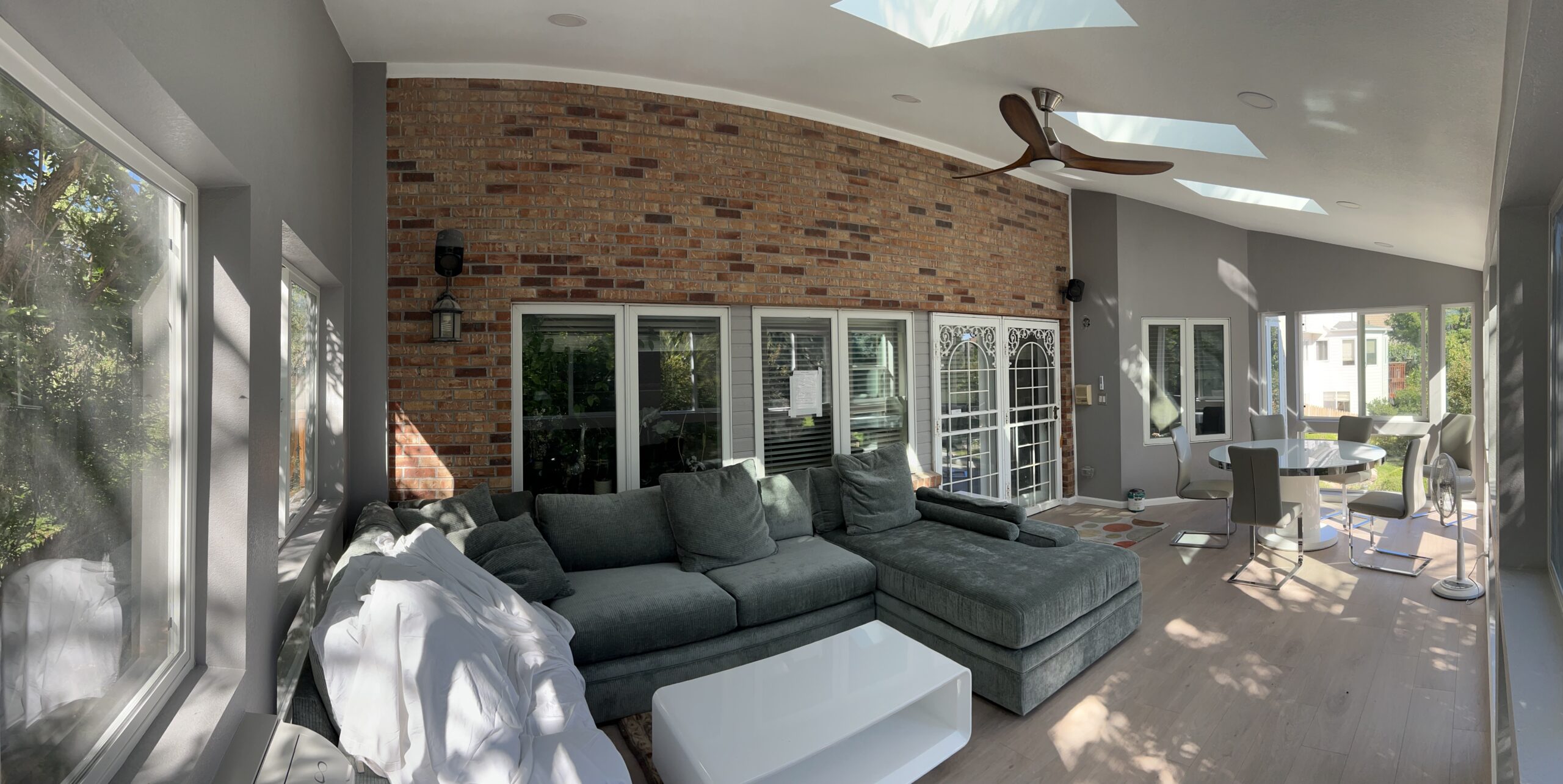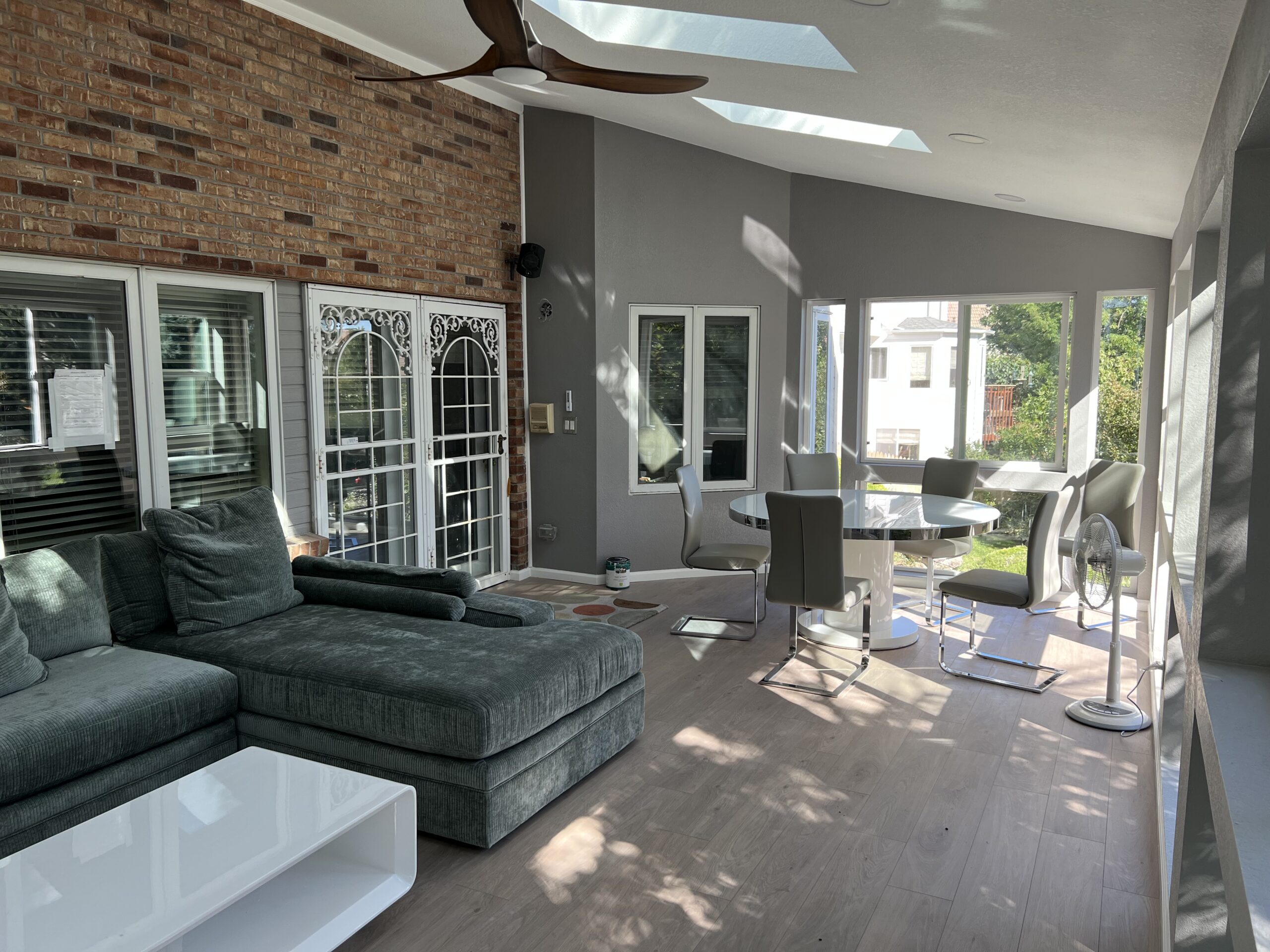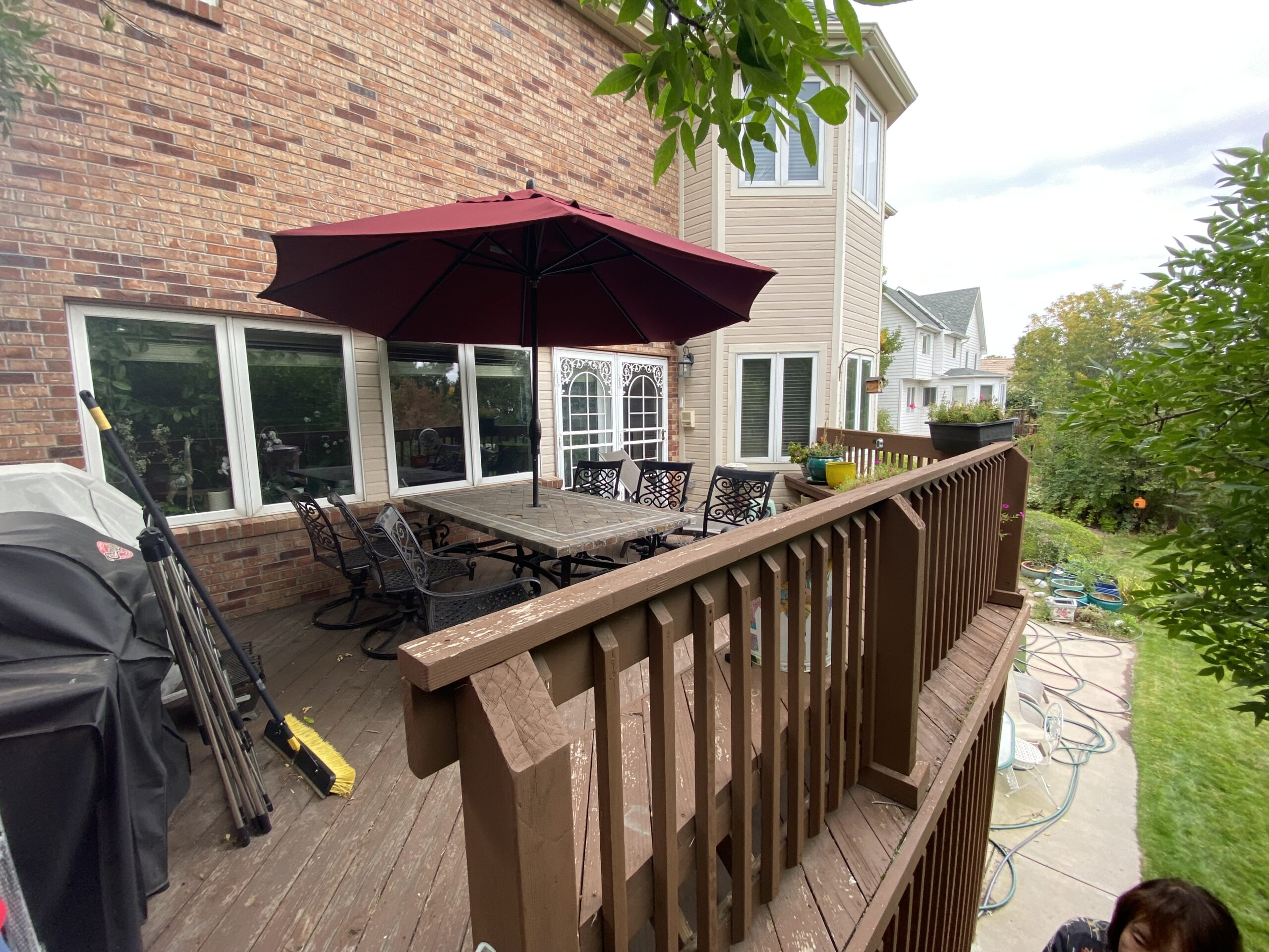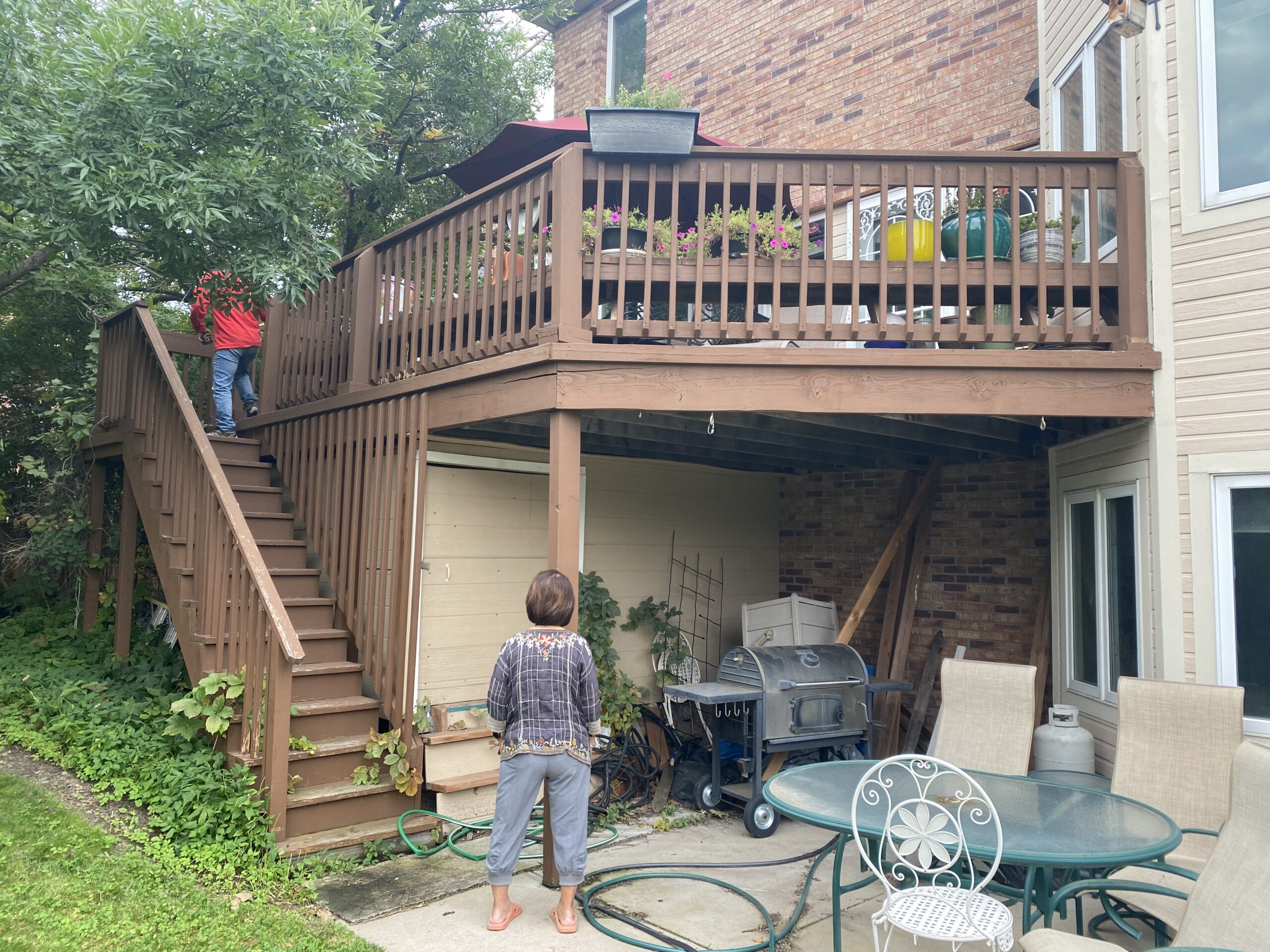 This owner had an old deck that was starting to fall apart; she had kept repainting it every year, but it was never able to stay looking nice. One dream that she had was being able to build a sunroom for her to enjoy views of the outside world throughout the entire year. So what we did was build a sunroom for her. The sunroom was the same size as the existing footprint of her deck. We built a new frame with metal roofing and made the sunroom look like a part of the house by matching things to make it look like the house.